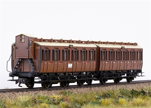 carriages C3/C3 2 x 3rd class and 3rd class with brakeman's cabin in nut brown and one pair of