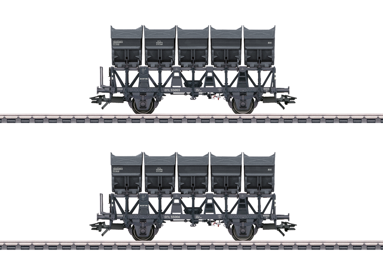 Prototype: 2 two-axle STCwf dumpers from the Luxembourg State Railways (CFL). Graphite gray basic