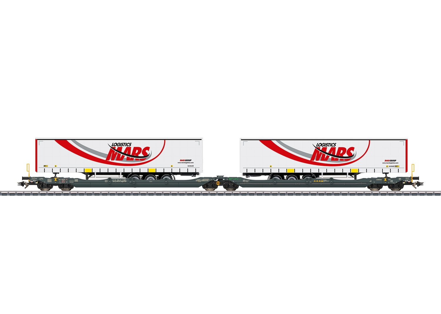 mountable parts. Loaded with two curtain tarpaulin semi-trailers from the forwarding company Mars.