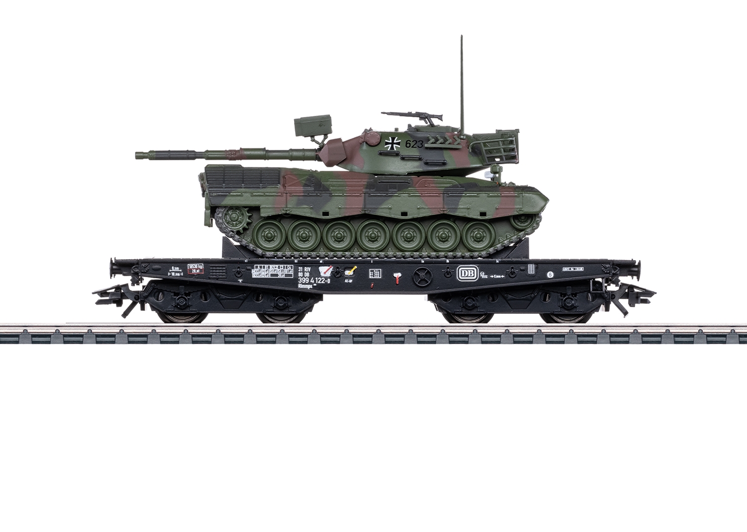 Prototype: Rlmmps 650 heavy-duty flat car type of the German Federal Railway (DB), loaded with a